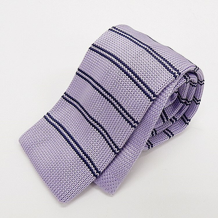ニットタイ ネクタイ 剣先6cm ラベンダー×紺 2本縞 メール便選択可能 MN44