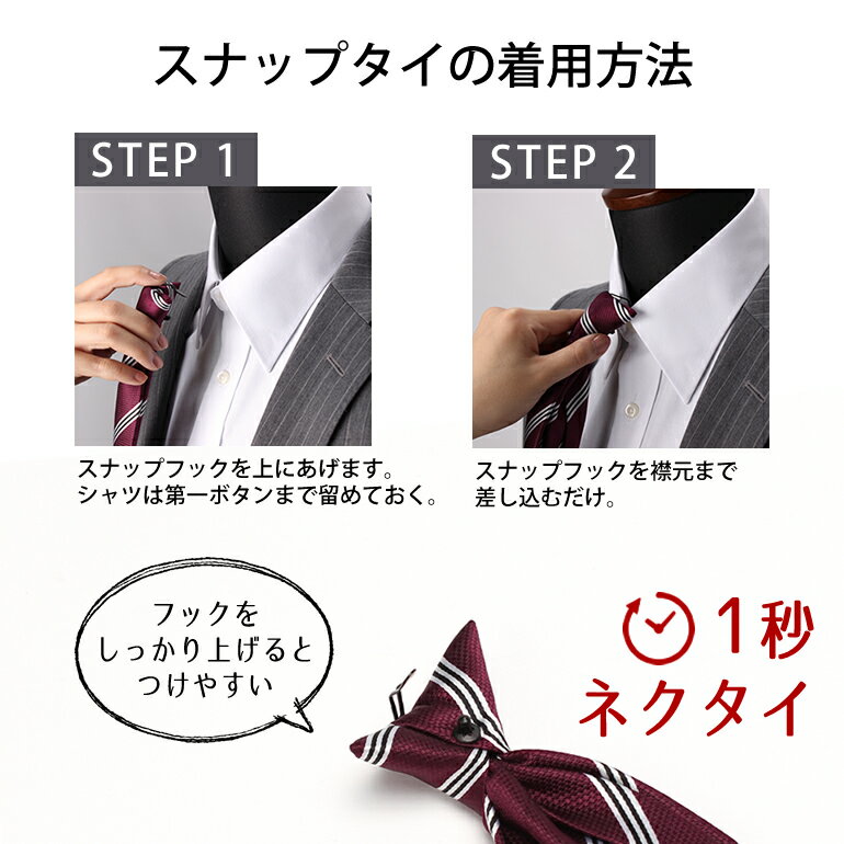 1秒で完了!スナップタイ[snap tie]自社オリジナルのワンタッチネクタイです。