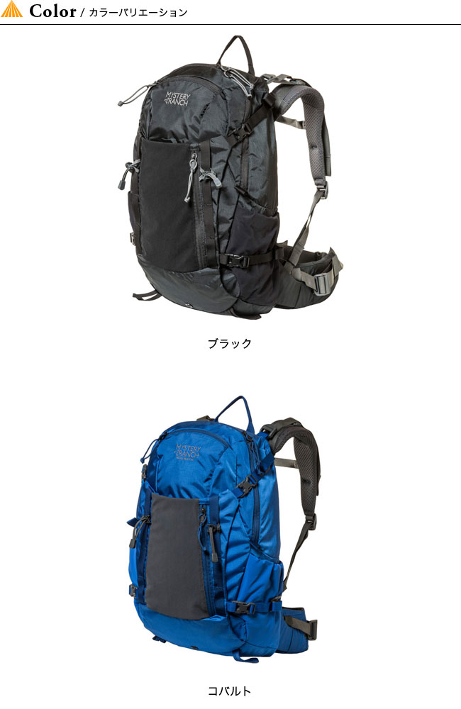 【 SPEC /製品仕様 】■ブランド名:MYSTERY RANCH■商品名:RIDGE RUCK 30 リッジラック30■商品型番:19761215■サイズ: 53cmx30cmx28cm■素材:210D CORDURA Rip■重量:1.2kg■生産国:-■容量:30L■仕様:・ショルダース/ウエストストラップを同時に調整しフィットできる“シングルポイント調整" 機能 ・サイドポケット付きウエストベスト ・フロント・スティックイット ・2つのジッパー付きコンパートメント ・サイドストレッチボトルポケット ・サイドコンプレッションストラップ ・ハイドレーション対応 ・2つのツールキャリーループ・ヨークサイズ:16-18インチ(41-46cm)■広告文責:株式会社カンパネラ※PCモニター環境により画像の色合いが若干異なる場合がございます。